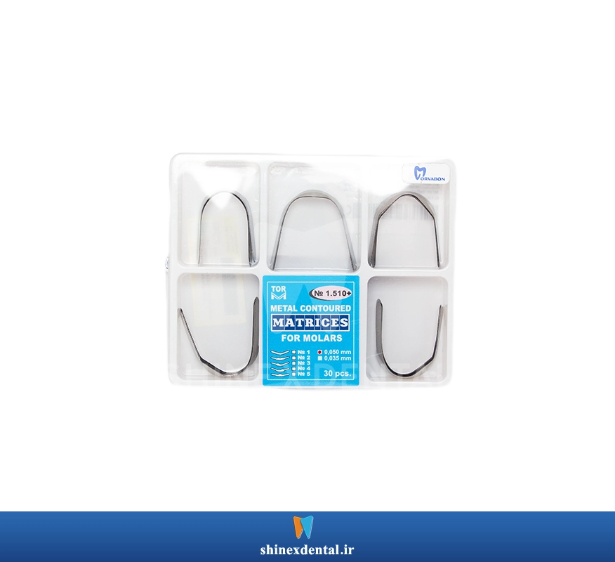 این کیت شامل ۵ نوع مختلف ماتریس منحنی مخصوص دندانهای پریمولار است. هر مدل برای موقعیت متفاوت در ترمیم طراحی شده و از جنس مقاوم با ضخامت ۵۵ میکرونی ساخته شده تا عملکردی دقیق و بادوام داشته باشد.